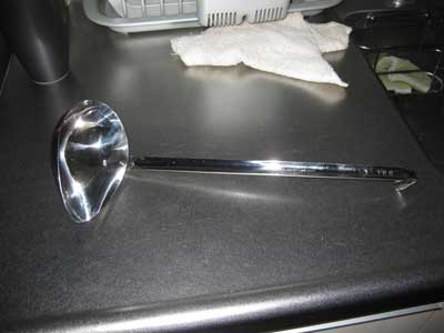 東急ハンズで買ってきたんだけど、「大は小を兼ねる」がモットーなもんで、でかい180mlのを買ったんだよね。ふと、移す方の器の口が小さかったら、このおたま、出番ないじゃん…orz と思ったんですが、その時は小さいのを買うか?!