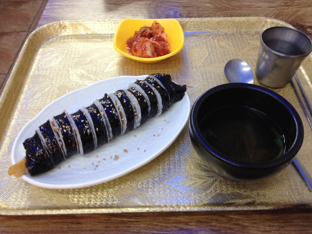 具材がいろいろありますが、だいたい5種類くらい入っているのと、2500〜5000ウォン(忠武キムパというのはやたらに高かった)ぐらいで収まるリーズナブルさが気に入って、よくお昼に食べてました。釜山に限らず全国区なんで、どこでも買えるし。