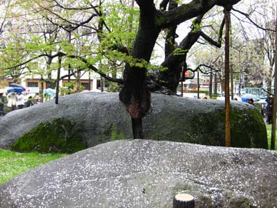 種が石のあいだに落ち、そこから伸びた根が石を割ったんだそう。よくそんなところで種が芽を出せたなとか、よくそんなところに残っていたなとか思うのですが、年々広げてるっていうから、木の力ってすごい。