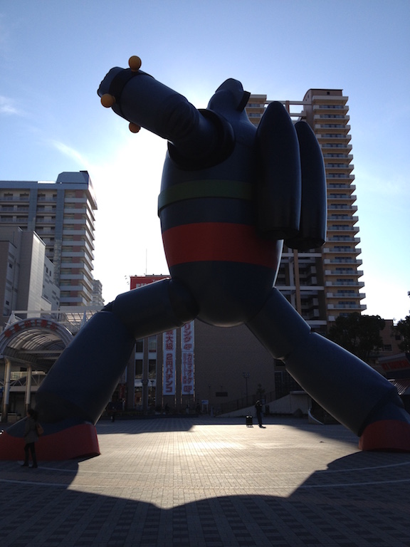 鉄人の足下を見ながら朝ご飯。置いてあったパンフレットを眺めていたら、一帯が横山先生のテーマパークみたいになっていて、「三国志」はあんまり興味ないんですけど、「水滸伝」のジオラマとか、「鉄人28号」の資料とかあることがわかりましたが、そこに行ったら、一日いてもたぶん終わらないので泣く泣く神戸を離れます。うう、また今度…
