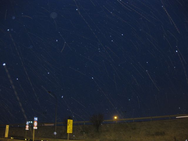 見づらいと思いますが、降りしきる霰か雪か霙か。東部湯の丸SAにて。
