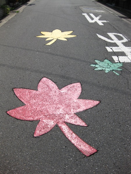 わしの好きなご当地シリーズ。道路に描かれた紅葉。