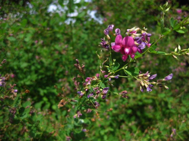 参道に咲く萩の花。上2枚は日陰のところ。下は日当たりのいいところ。