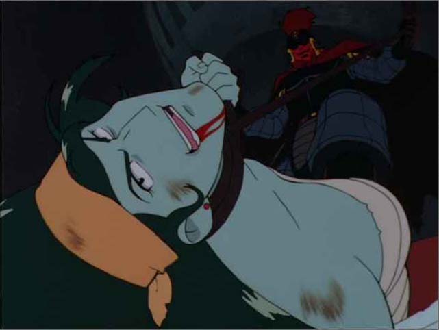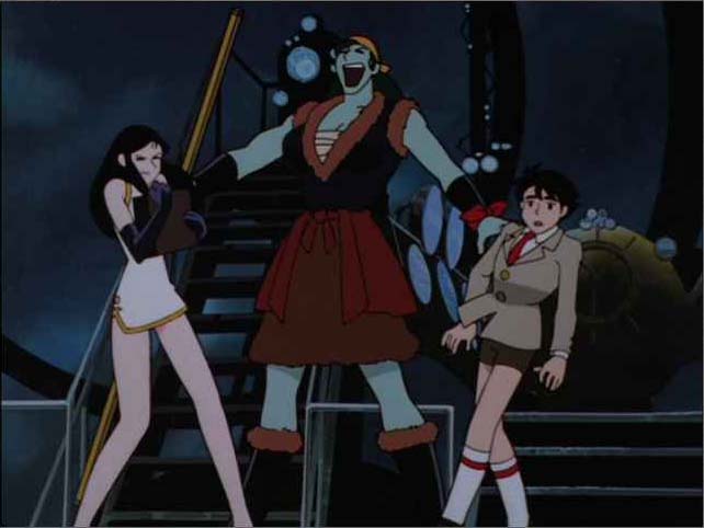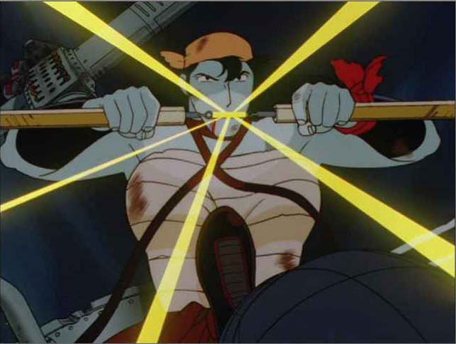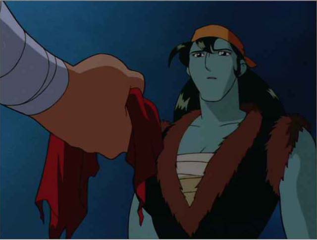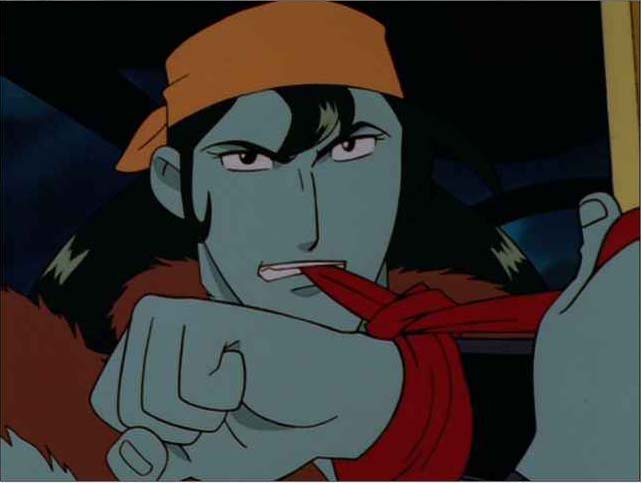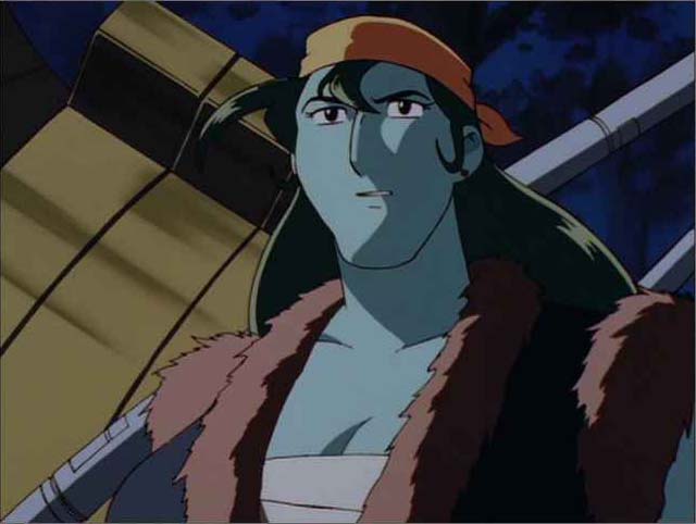 どうせアイデアだけなんで書いておきますと、楊志は戴宗の命を救うため、輸血を敢行したものの、自身の血液が足りなくなり、逆にピンチに。人工血液が輸血されたけど、まだ未完成なんで青い血になってしまった。戴宗は以前は彼女の強さ(性格的にも腕力的にも)を疎んじていたけれど、楊志の見せた優しさに惚れてしまいます。で、めでたく2人はカップルに、という展開だったわけです。楊志が上に着ている毛皮を脱ぐと、左胸に傷痕が見えるわけですよ。そこら辺も妄想の助けになってるわけです。作中で楊志が傷を負うのは、Episode 4のみだからね!