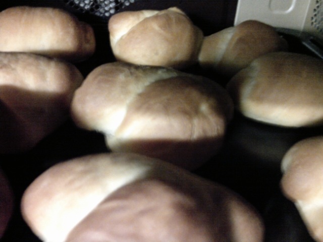 二次発酵させているうちに丸めた生地がめくれてきたので丸め直して、10分焼きましたが、どうも焦げ目がいまいちです。ぶっちゃけ、美味しそうなパンでありません。