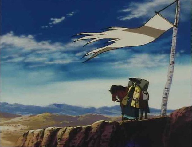父への思いを語るサイ・サイシー。今川監督お得意の父と子の絆です。ドモンとカッシュ博士、ドモンと師匠はかなり濃密に描かれたので今更言うまでもありませんが、わずか1話きりの言及ながら、山口勝平さんの演技も迫真で、顔も覚えていない父の姿(未来世紀なんで、ホログラムとかせめて写真の1枚でも残ってると思うんですが… ネオチャイナの人びとは素で「水滸伝」とかに出てきてもおかしくないクラシックな格好なんで、写真とか貴重品かも!)、でも、夢に向かって、ひたむきに生きた父の姿が見えると言うサイ・サイシー。