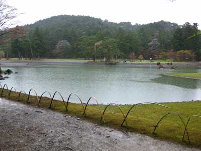 突然、鷺が飛び立ったり、水鳥が飛んでいったり、鳥がたくさんいた。雨だっていうのに。