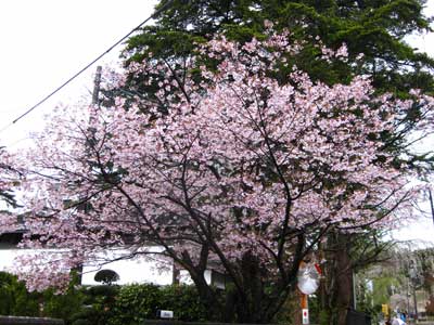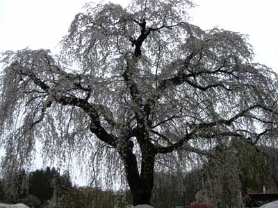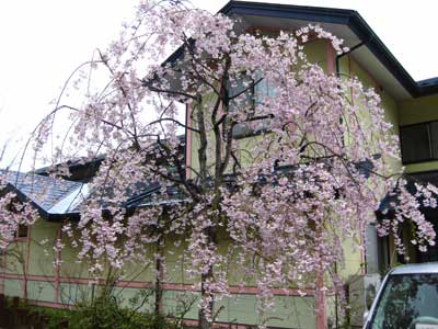駅に向かう途中で見かけた枝垂れ桜。