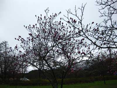 小岩井農場は盛岡辺りより標高が500mぐらい高いそうで、桜はまだまだだそうだ。しかも木蓮咲いてるしー! それ、1月の花だしー! 完璧に服装、間違ってます。冬だよ、冬。