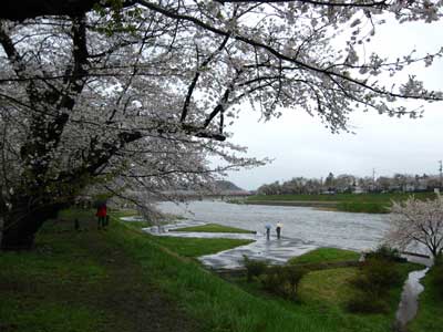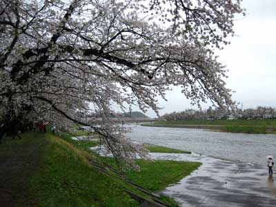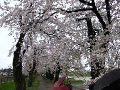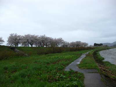 しかし、ここに来て、家族がこれ以上、桧木内川沿いは歩きたくないと言い出す。まぁ、冷静に考えれば、足下は泥だし、風は冷たいし、雨は依然降り続いているし、桜を見るには最悪の環境なのだ、冷静に考えれば。