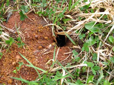 こんな穴ぼこなんかあったりして。たぶん、もぐらなんだろう。