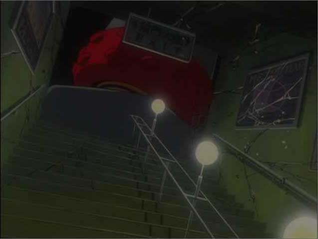 さらに足。しかも画面の揺れがロボの重量感を演出します。ずっし〜ん!という重量感、歩くだけで割れちゃうガラス。地下道の入り口だということは明々白々、ロボの足の大きさが伺えます。