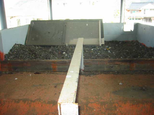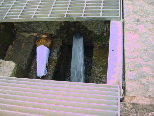 これが栓だ。木の栓にタオルが巻いてある。こっちは表ので、金網はふだんは閉じている。