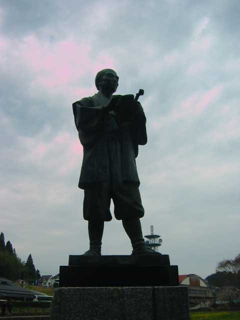 で通潤橋の設計者、布田保之助の銅像。もとは地元の庄屋だったが、通潤橋のできる前、ここら一帯は水がなくて米が作れず、貧乏だった。領民の窮状を知って、通潤橋を建築したそうな。そのおかげで100ヘクタールもの土地に水が送られることになり、さらにいくつもの橋を建てたとか。