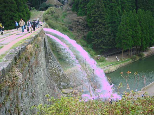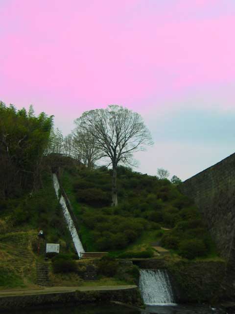 で、こっちの側には城跡があった。なんでも鎌倉時代に建てられ、江戸時代初期に一国一城を理由に取り壊されたそうだ。いまは跡ぐらいしか残ってないみたいだ。通潤橋に注ぐ流れはお堀になってた。