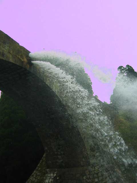 いよいよ近くまでやってきました通潤橋。さっきの放水の名残か水が滴っているが、本物の放水はこんなものではなかろうもん。