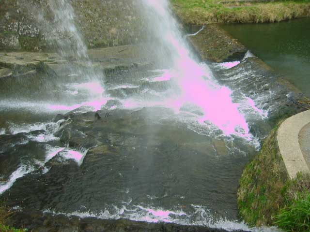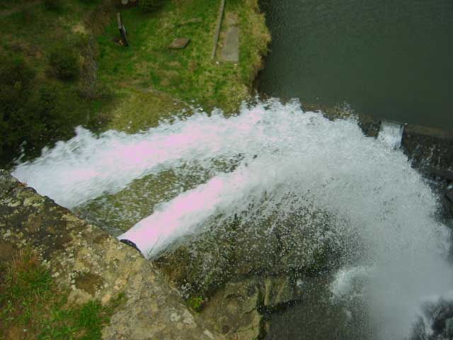だんだん勢いの弱まっていく放水。十中八九間違いないと思うんだけど、上流を堰き止めてるんじゃないかと。