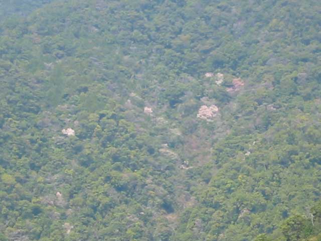 駐車場の向こうに見えた、杉林の中の桜。こういうピンポイントの桜というのが楽しい。なかなか見に行けないところにあるので近くで見るのは難しいが、緑の中の桜色はやはりきれいだ。
