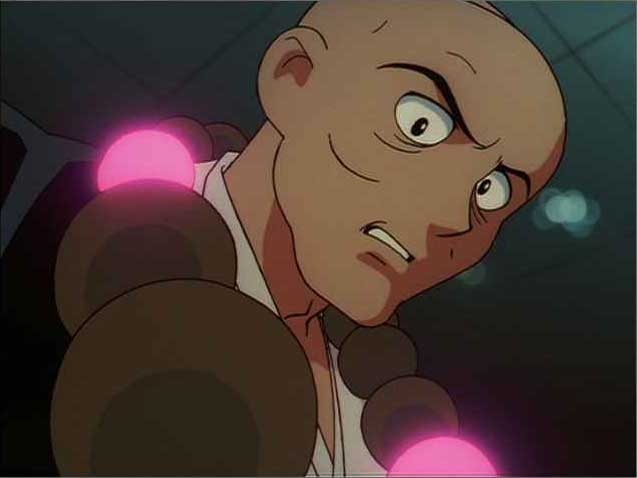 廻るよ、この光。どう考えても隠密行動に向いてない。しかし、Episode 2でこの数珠を通った楊志(ということはかなり大きいんだが、素材は何でできているのか? 光るから光ファイバーとか入ってんのか? かなり重そうだが、一清道人てエキスパートの中じゃ小柄なんだよな〜)をアルベルトの周りにいっぱい出したりした、呪術に使うアイテムらしいが、通信機も兼ねていたとはね〜。