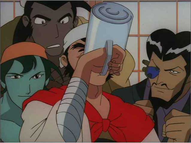 で、1回見ただけだとわかりにくいのが、GinReiロボとの戦いと交互に挟まれるこの宴会シーン。大作の「ぼく、ほんとは29歳なんです。子どもも一人いるんです」に引くエキスパートの面々。「静かなる中条」今回は全然静かじゃないっす。