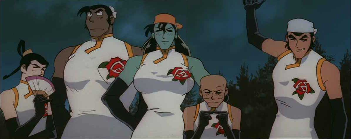 たいがいどのキャラも本編以上にぶっとんでる本作(一見、本編と変わらなさそうな戴宗、鉄牛、楊志もチャイナ着てるし。一清道人は頭にでかいこぶ作ってるし。中条長官と呉先生はおほもだちってるし。アルベルトとイワンはハミングしちゃうし)だが、いちばんイメージが変わってるのが幻夜だと思う。やはり、本編の幻夜はラストがあるのでどうしても悲劇的なんだけど、本作の幻夜、いいっす。初登場から青い薔薇持ってるし、大作を勧誘する時なんか小指立てちゃう。可愛いよ、幻夜。