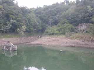10月〜4月はこの水の上に出てる分しか見えない。右手の土手にある穴は、発電所が動いていた時の水路のあと。